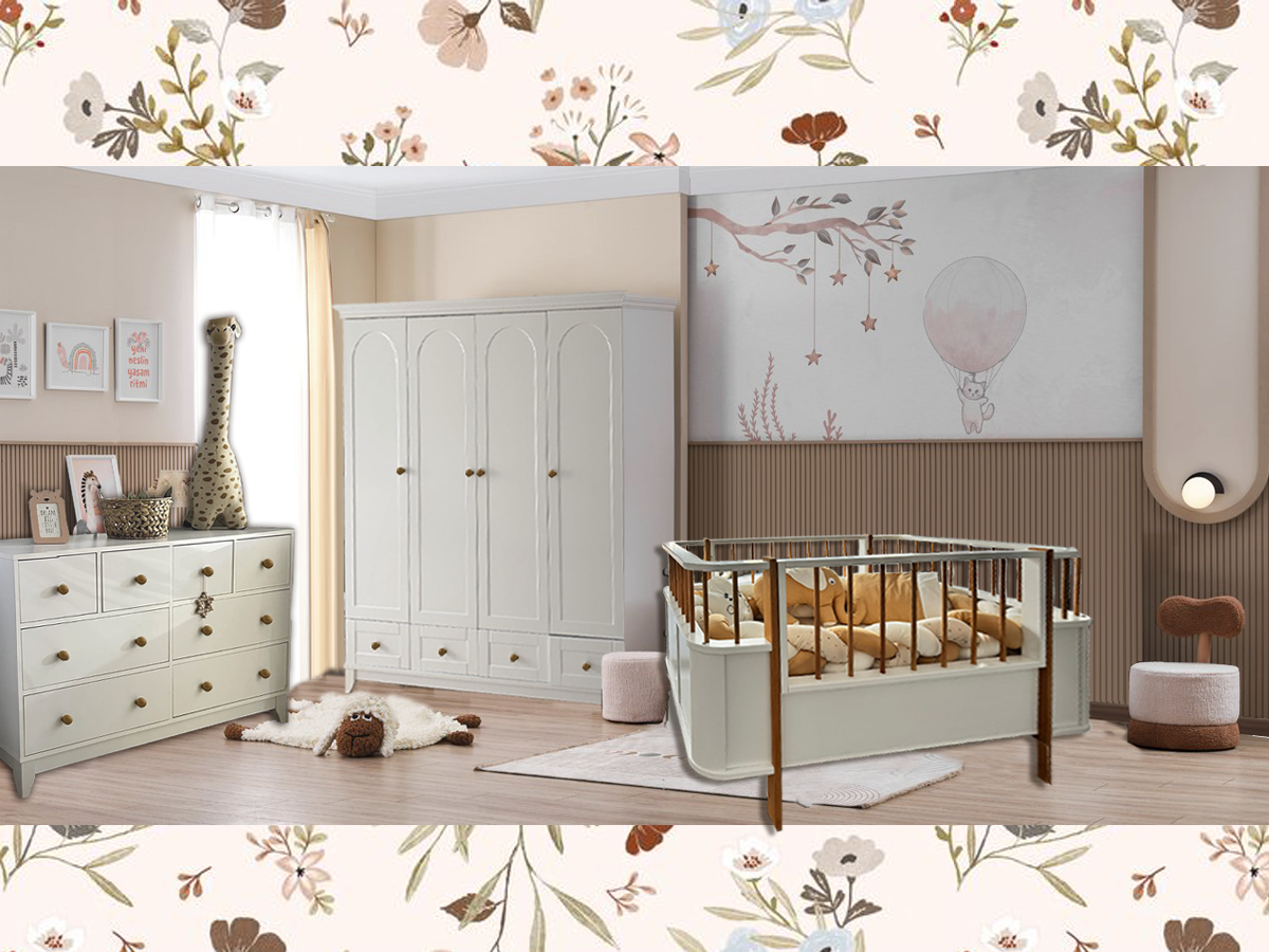 •  %100 MDF Oslo Mega Bebek Odası Takımı ( 4 Kapılı Dolap & 8 Çekmeceli Şİfonyer & Büyüyen Karyola )