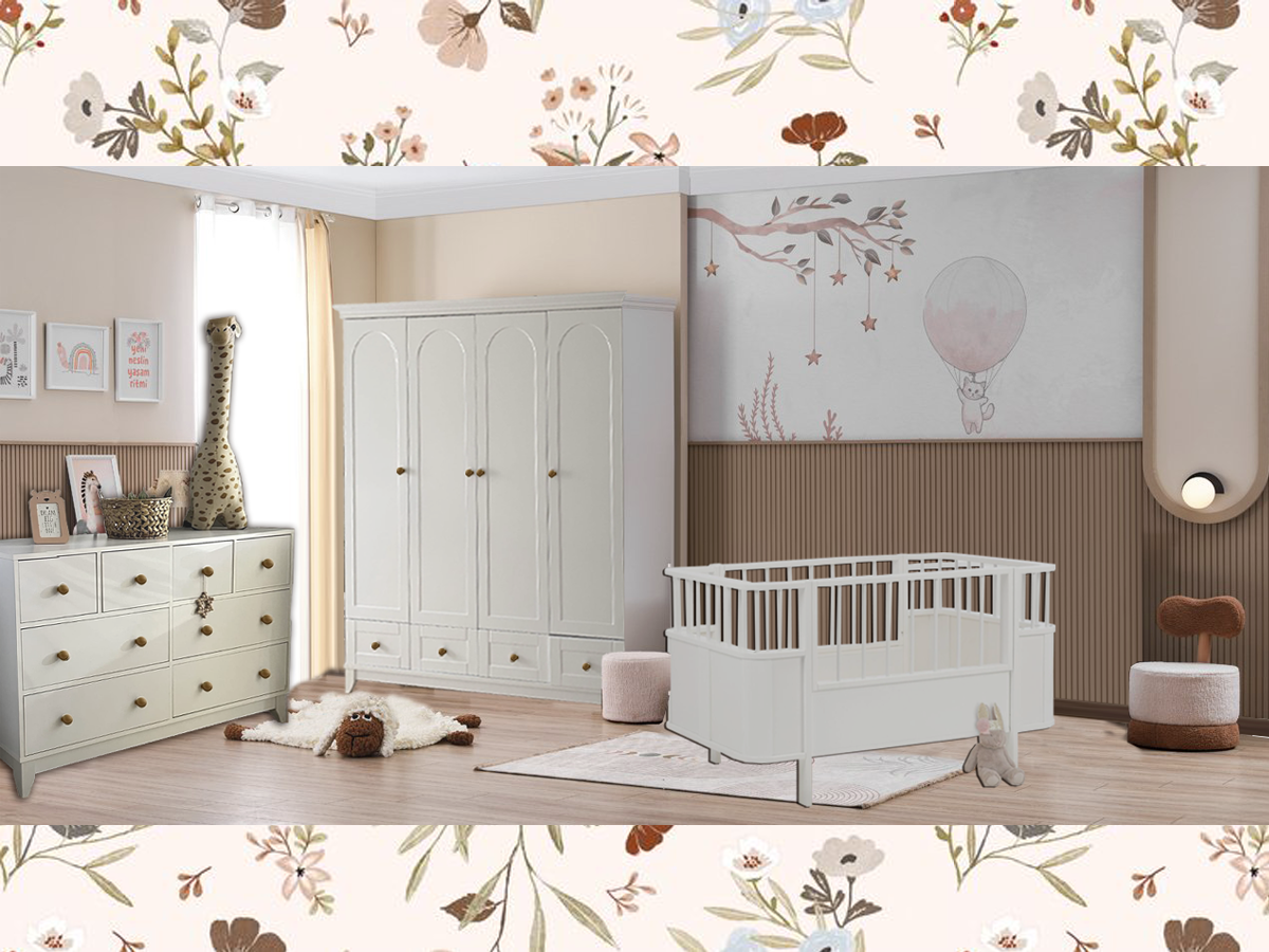 %100 MDF Oslo Mega Bebek Odası Takımı ( 4 Kapılı Dolap & Bonnie Şifonyer & Büyüyen Beşik )