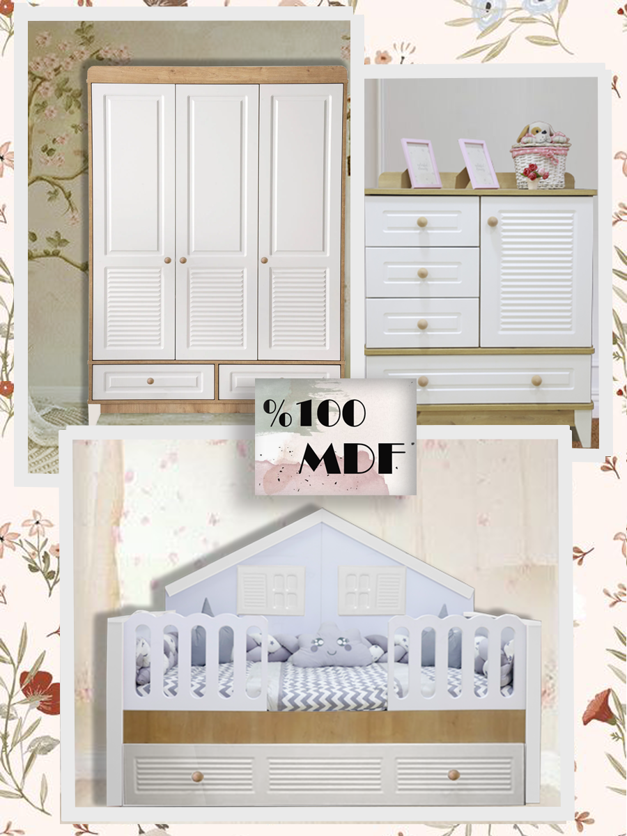 Panjur Ahşap Beyaz Duvar Çatılı Maxi Bebek & Çocuk Odası Takımı